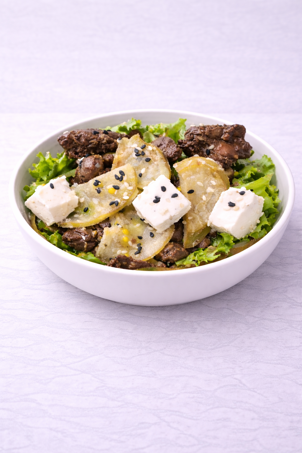 Куряча печінка з карамелізованою грушею